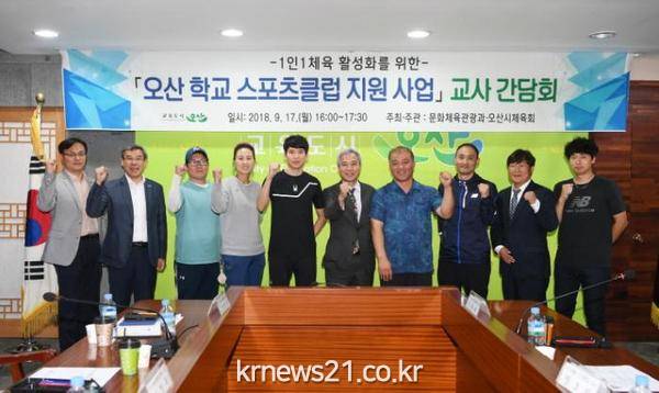 오산시(시장 곽상욱)는 지난 17일 1인 1체육 활성화를 위한 「오산 학교 스포츠클럽 지원 사업」시범학교 교사들과 간담회를 가졌다.