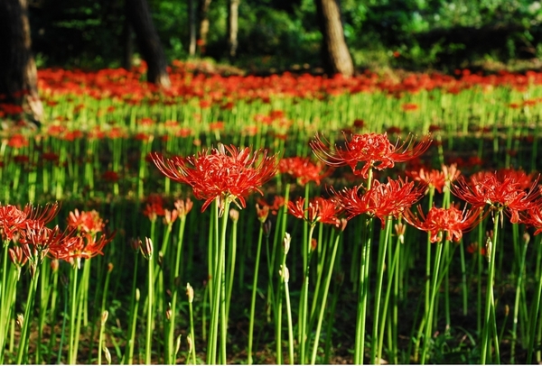 우리나라에는 전북 고창의 선운사와 전남 영광의 불갑사, 함평의 용천사가 유명한데 유독 사찰 주변에 많은 이유는 꽃무릇 뿌리의 실용성 때문이다.