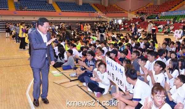 권오봉 여수시장이 여수지역아동센터연합회 체육한마당대회 현장을 찾아 아동들의 건강한 성장을 응원했다.