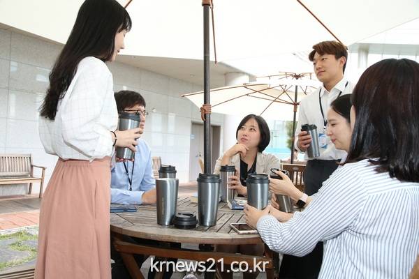 개인용 컵 사용을 독려하고 부서 내 종이컵 등의 일회용품 직접 구매를 금지했다. 생수를 구매하는 대신 아리수 음수대를 이용하도록 했다. 각종 회의에서는 다회용 컵 사용으로 페트병 사용을 지양했고 외부 행사에서는 대형 보온통과 음수대를 적극 활용했다.