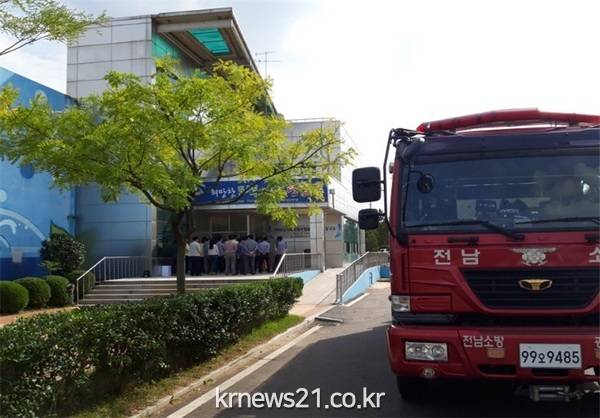 훈련에는 광양소방서(광양119안전센터) 소방차 2대와 구급차 1대가 동원됐으며, 자위소 방대에서 자체 소방설비인 옥내소화전과 소화기를 사용했다