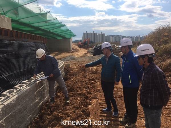 김포시(시장 정하영)는 전종익 교통국장이 시도 5호선 도로 개설사업 공사현장을 방문하여 공사 진행상황과 품질 및 안전관리 전반을 점검했다.