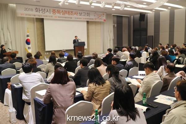 화성시 중독통합관리지원센터가 17일 푸르미르 호텔에서 전문가와 시민 등 120여명이 참석한 가운데 ‘성인중독실태조사 보고회’를 개최했다.