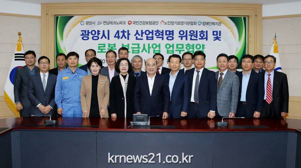 이어 열린 업무협약에서는 (재)전남테크노파크, 국민건강보험공단 광양구례지사, 광양시 노인장기요양협회, 장애인복지관과 ‘로봇활용 사회적 약자 편익지원사업’을 위한 협약 체결이 진행됐다.