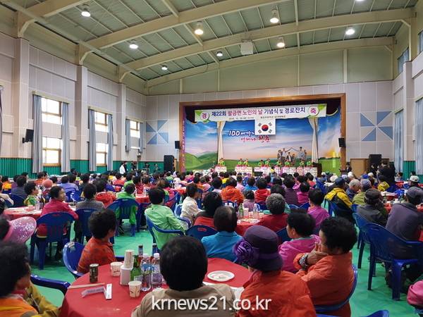 「제22회 팔금면 노인의 날 기념식 및 경로잔치」가 19일 박우량 신안군수를 비롯한 유관기관 단체장 등 500여명이 참석한 가운데 팔금초등학교 체육관에서 열렸다.