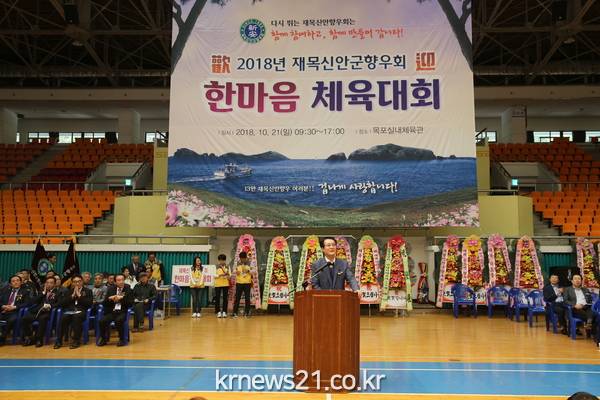 재목신안군향우회(박준성 회장)는 지난 10월 21일(일) 목포실내체육관에서 1,000여명의 향우민과 내빈이 참석한 가운데 “재목 신안군 향우회 한마음 체육대회”를 성황리에 개최했다.