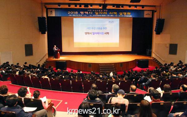평택시(시장 정장선)는 시민을 위한 일자리 창출 및 우선 고용분위기 확산을 위해 지난 22일 남부문화예술회관 대 공연장에서 일자리 지원 시책설명회를 개최했다.