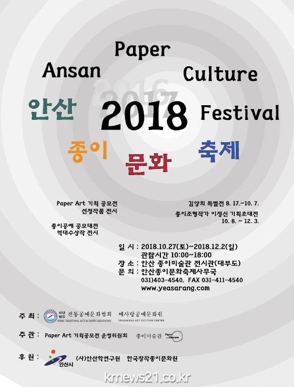 행사에 대한 자세한 사항은 안산종이문화축제 사무국(☎032-887-0606)으로 문의하면 된다.