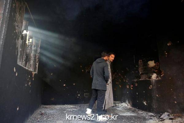 인도 보안군과 무장 세력 간의 총격전이 벌어진 인도 스리나가르 외곽 나우감의 집안 내부에 보이는 총탄 자국.