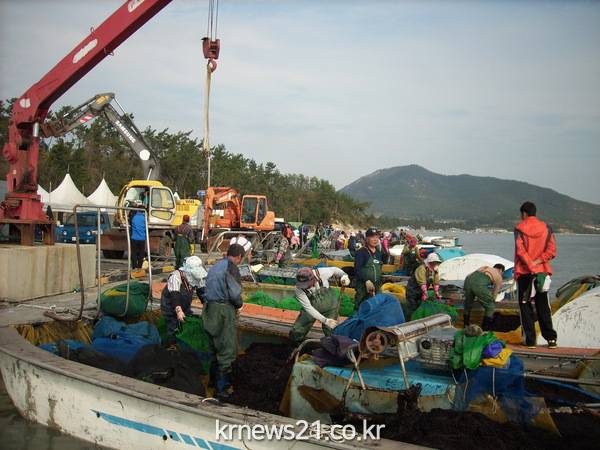 당일 1004섬 분재공원 물양장에서 실시된 위판에는 4어가에서 12톤의 물김을 판매하였으며, 120kg 망 당 평균 16만원에 거래되어 총 1천 7백만원의 위판고를 올렸다.