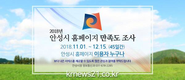 안성시는 오는 11월 1일부터 12월 15일까지 45일간 홈페이지 이용에 대한 만족도 조사를 실시한다.