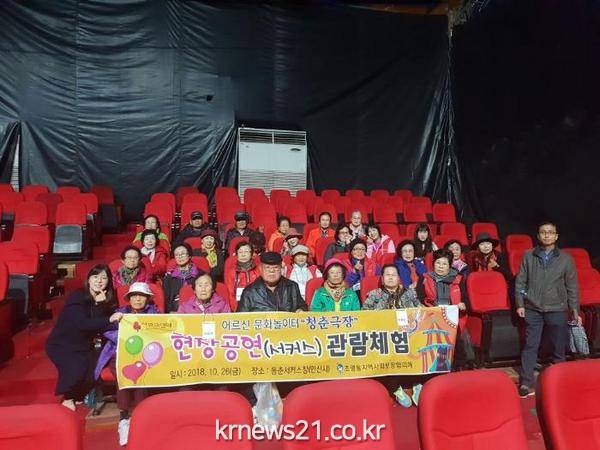 초평동 지역사회보장협의체에서는 지난 26일 지역 어르신 20여 명 및 협의체 위원 등과 함께 파랑새 복지사업인 어르신 문화놀이터 「청춘극장」 현장공연 관람체험으로 동춘서커스 공연을 관람했다.