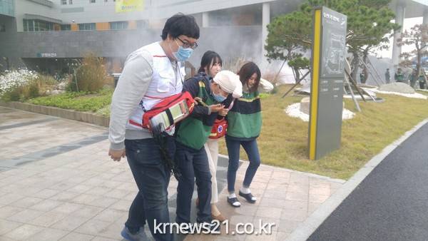 이번 훈련은 자위소방대원과 소방공무원 뿐만 아니라 청사를 방문한 민원인들도 함께 참여해 여느 때보다 현장감 있게 진행됐다.