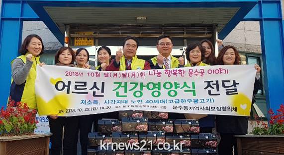 문수동에 따르면 지난 29일 문수동지역사회보장협의체 위원들이 취약계층 40세대를 직접 방문해 한우야채불고기를 전달했다.