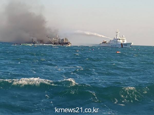 해경 관계자는 “구조된 선장 및 선원 등을 상대로 정확한 화재 사고 경위를 조사할 예정”이라고