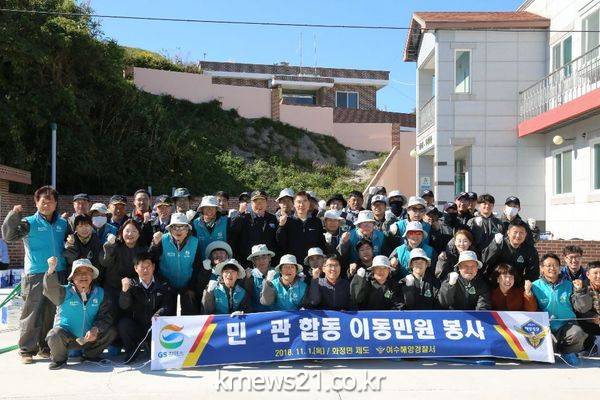 이번 봉사활동은 여수해경 경찰관과 GS칼텍스 강정범 상무 등 임직원 60여 명의 합동 봉사단이