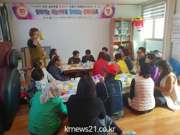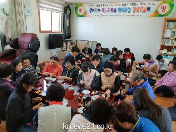 마을 부녀회장 송옥희 씨는 "마을 주민들이 옹기종기 모여 향기좋은 울금비누 만들기와 구슬로 팔찌.목걸이를 만들며 동심으로 돌아가는 좋은 추억을 선물해줘 고맙다"며 연신 행복한 미소를 지었다.