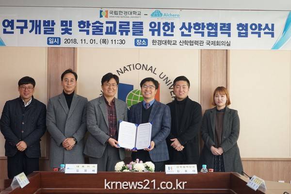 국립한경대학교(총장 임태희)는 11월 1일 산학협력관에서 ㈜알체라와 연구개발 및 학술교류 활성화를 위한 산학협력 협약을 체결했다.