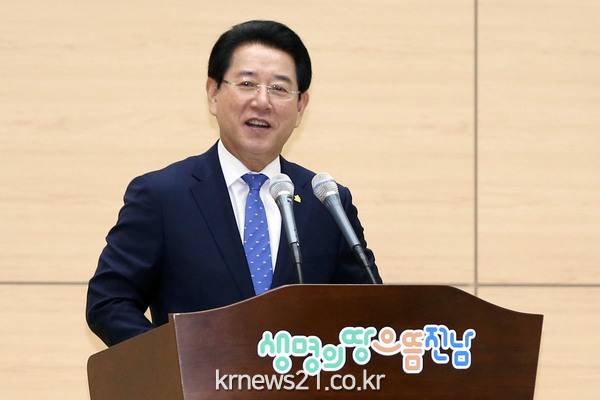 김영록 전남도지사가 5일 오전 도청 왕인실에서 모범공무원을 시상, 인사말하고 있다.