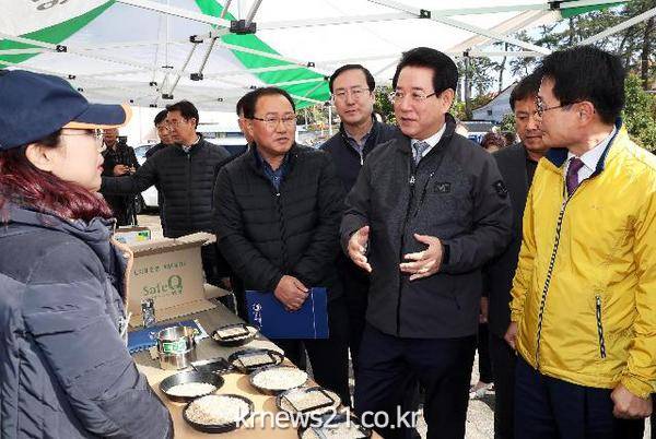 김영록 도지사는 공공비축미 매입 현장에서 “올해 가뭄, 태풍의 영향으로 작황이 부진해지는 등의 이유로 쌀 생산량이 줄었지만, 쌀값이 안정화되고 있어 그나마 다행”이라며 농가 소득 유지를 위해 특등급이 많이 나오길 바랐다.