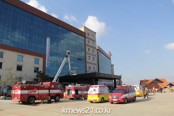 여수소방서(서장 김용호)는 지난 14일 여수시 안산동 소재 유캐슬 웨딩·호텔에서 대형 재난 발생 시 신속한 현장대응과 긴급구조통제단 가동으로 시민의 생명과 재산을 보호 하고자 ‘재난현장 긴급구조통제단 및 다수사상자 구급대응 훈련’을 실시했다.