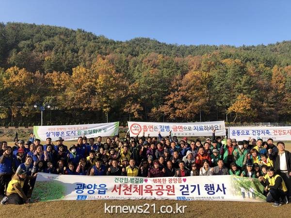 광양시 광양읍(읍장 정홍기)은 지난 17일 「건강한 발걸음♡ 행복한 광양읍♡」이라는 슬로건으로 광양읍 서천체육공원 걷기 행사를 실시하였다.
