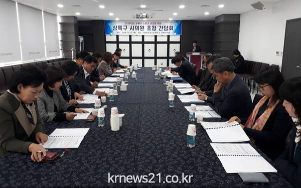 안산시 상록구(구청장 이태석)는 지난 15일 2019년도 본예산 심의를 앞두고, 상록구 소속 시의원 10명을 초청, 간부공무원들과 함께 내년도 구정운영에 따른 사업에 대해 설명하는 시간을 가졌다.