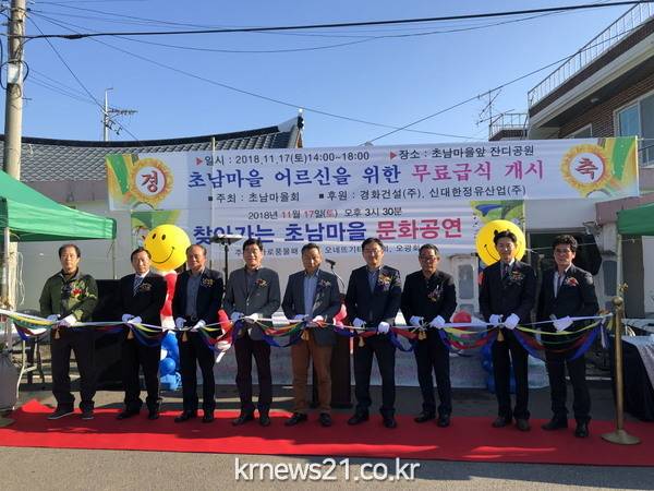 초남마을회 주관으로 열린 이번 행사는 초남마을회(이장 손재기)에서 80세 이상 노인과 65세 이상 독거노인을 위한 무료급식을 시행하는 것을 축하하기 위한 자리로 마련됐다.