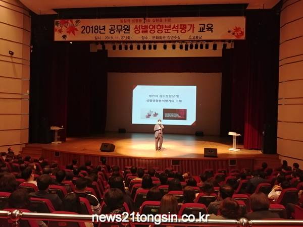 고흥군(군수 송귀근)은 11월 27일 문화회관 김연수실에서 공무원 320여 명을 대상으로 성인지 감수성 제고 및 양성평등의식 확산에 초점을 맞춘 ‘성인지 및 성별영향분석평가 교육’을 실시했다.