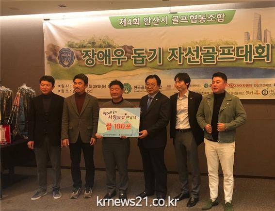 안산시골프협동조합(이사장 이군재)은 지난달 29일 안산시장애인체육회에 사랑의 쌀 100포를 전달했다.