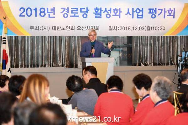 (사)대한노인회 오산시지회(지회장 조재웅)주관으로 오산 컨벤션 웨딩홀에서 열린 이날 평가회에는 곽상욱 오산시장을 비롯한 내빈과 경로당의 어르신 등 200여 명이 참석하여 2018년 한 해 동안 진행된 경로당 활성화 사업을 돌아보는 시간을 가졌다.
