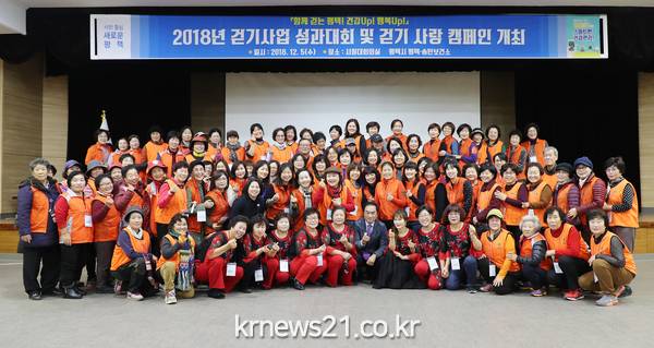 평택시(시장 정장선)는 지역사회 걷기실천 확산을 위해 노력한 걷기지도자 127명을 대상으로 시청 대회의실에서‘2018년 걷기프로그램 성과 대회’를 개최했다.