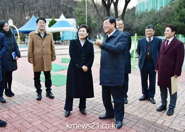김 장관이 지난 5일 안산시를 방문한 가운데 윤 시장은 김 장관과 함께 백운공원을 둘러보며 백운공원의 재조성 필요성을 강조하여 백운공원에 지정되어 있는 녹지구역의 해제 등을 김 장관에게 요청했다.