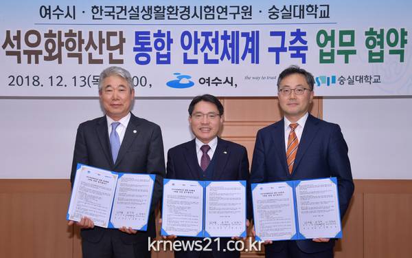 여수시와 한국건설생활환경시험연구원(KCL), 숭실대학교가 여수국가산단 통합 안전 체계 구축 업무협약을 체결함에 따라 체계적인 산단 안전관리가 기대되고 있다.