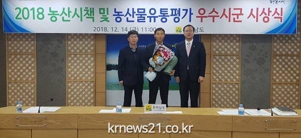 고흥군(군수 송귀근)은 12월 14일 식량작물 안전생산 등 농산시책 추진 우수 지자체 선발을 위한 ‘2018 전라남도 농산시책 평가’에서 우수상을 시상하였다고 밝혔다.