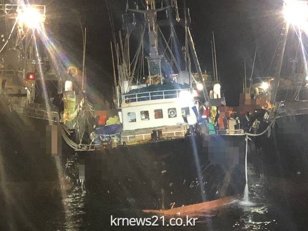인명피해는 없었으며, 충돌로 우현 수면 하 어획물 창고 밑바닥 부분 파공이 생겨 침수 중에