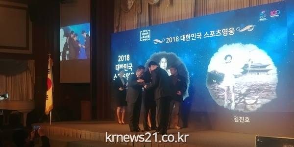 대한체육회는 19일 오후 2시 서울올림픽파크텔에서 2018 대한민국 스포츠영웅으로 선정된 김일(프로레슬링)과 김진호(양궁)의 업적을 기리는 헌액식을 개최했다.