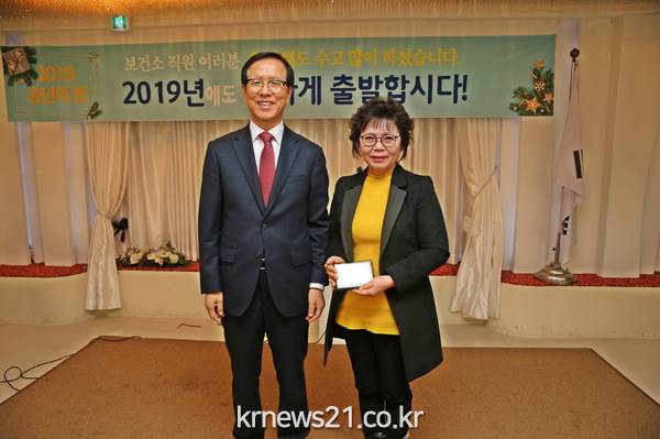 이날 송귀근 고흥군수는 인사말을 통해 보건사업 전반에 걸쳐 7개 분야에서 우수기관상을 수상한 노고를 격려하였고 직원들의 노력과 열정이 얼마전 언론에 보도된 국민건강지수 전국 1위로 나타났다면서 내년에도 군민들이 더 건강하고 살기 좋은 고흥을 만드는데 노력해 줄 것을 당부했다.