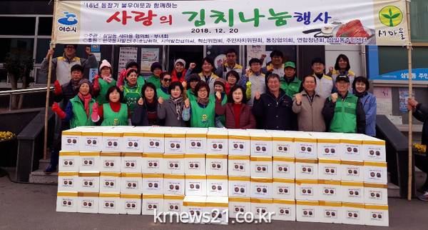여수시 삼일동은 연말을 맞아 취약계층을 돕기 위한 김장김치 나눔이 이어졌다고 밝혔다.
