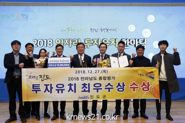28일 진도군에 따르면 투자유치대상 평가 2014년 최우수상, 2017년 최우수상에 이어 올해 2018년 최우수상에 선정됐다.