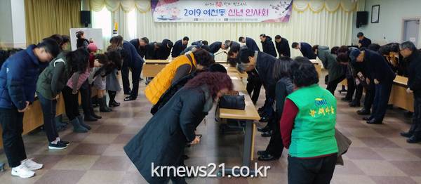 여천동은 매년 신년인사회를 개최해 주민 화합 등을 다짐해오고 있다.