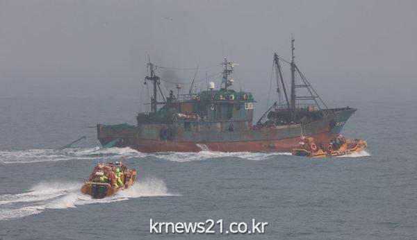 서해지방해양경찰청(청장 김병로)과 해양수산부 서해어업관리단(단장 김옥식)은 2019. 1. 14.(월) 09:40경 우리측 어업협정선 내측 약 3Km(전남 신안군 가거도 서방 약 96km 해상)에서 무허가 불법조업 중이던 중국 저인망어선 1척*을 나포하였으며, 나포 중국어선을 탈취 목적으로 집단행동한중국어선 2척**을 해경에서 추가로 나포하였다.
