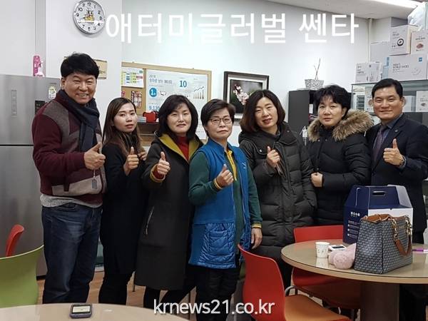 봉사에 동참한 인천애터미 글러벌탑 쎈다 본부장(이 재우) 국장(임 은주)