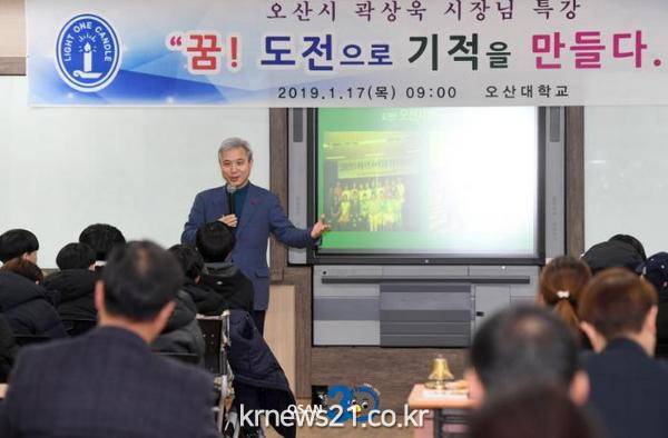 오산시(시장 곽상욱)는 지난 17일 오산대학교에서 열린 「크리스토퍼 평생교육원 오산지부(지부장 정창열) 청소년 겨울방학 캠프」에서 곽상욱 오산시장이 청소년들을 대상으로 특강을 진행했다고 밝혔다.