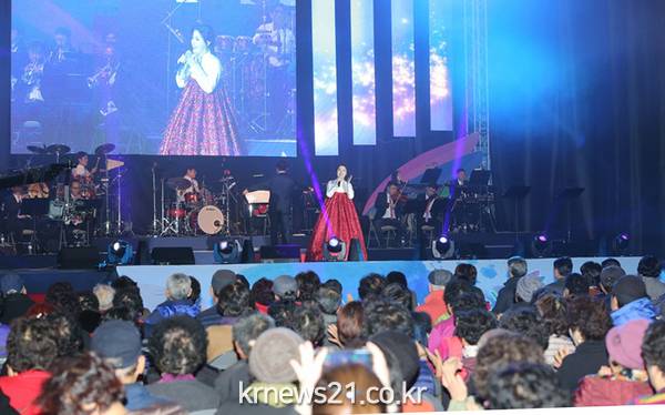 2부에서는 오정해, 송소희, 남상일, 최진희, 남진 등 국내 정상급 문화예술인이 출연해 판소리, 민요, 가요 등 다양한 장르의 음악을 선사하고 새해 처음으로 열린 공연을 보러온 관객들은 공연 내내 박수와 환호로 화답했다.