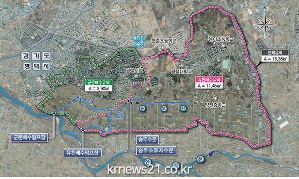 평택시(시장 정장선)는 2006년 2007년 집중호우 시 침수피해가 발생한 안성천 주변 저지대인 군문 합정 유천동 일원의 상습침수 해소를 위하여 ‘유천2지구 자연재해위험개선지구’정비사업을 추진한다.
