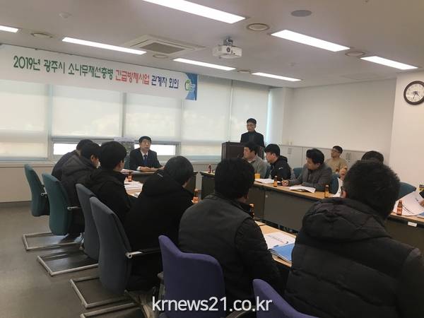 광주시(시장 신동헌)는 지난 22일 시청 소회의실에서 소나무재선충병 긴급방제사업 시공‧감리 참여업체 및 담당 공무원이 참석한 가운데 ‘소나무재선충병 긴급방제사업 추진을 위한 관계자 회의’를 개최했다.