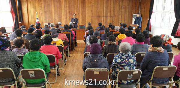 ▲ 여수시 남면사무소(면장 류성식)는 지난 4일 면사무소 2층 회의실과 중계민원출장소에서 노인사회활동지원사업 안전‧소양교육을 열었다. 이날 교육에는 사업 참여자 110여 명이 참석했다.