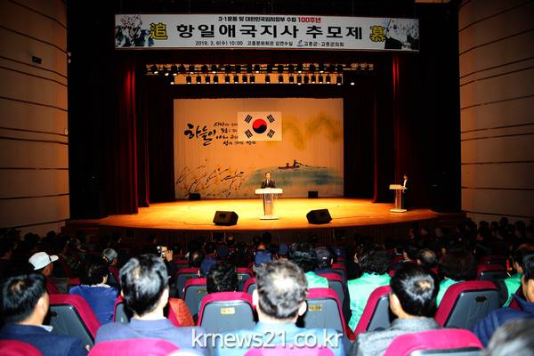 일제의 국권침탈로 억압 받는 조국의 독립을 위해 희생하신 애국지사들의 넋을 추모하기 위해 독립유공자 유족, 국가유공자, 보훈가족, 기관단체장, 군인, 학생 등 300여명이 참석한 가운데 고흥군 종합문화회관 김연수실에서 개최하였다.