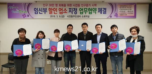 시전동장과 8개 참여업소 대표는 지난 8일 인구 증가를 위해 자체시책인 ‘인구 30만 명 회복을 위한 임신부 할인 업소 지정 사업’ 업무협약을 체결했다.